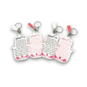 מחזיק מפתחות 9 ס”מ 50 יחידות מעורב דגמים וצבעים מזמור לתודה תפילת הדרך ושיר למעלות
