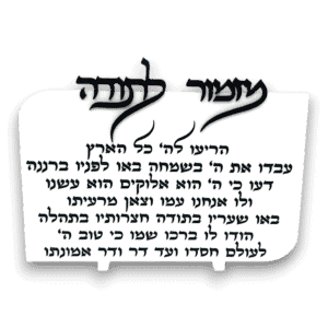 מעמד שולחני אקרילי לבן מט דגם מזמור לתודה 20*29