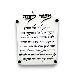 מזמור לתודה 30*40 לבן בהדפסת UV (אקרילי 6 מ”מ)