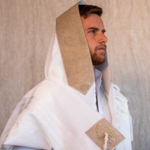 טלית צמר לייזר עם עטרה ופינות צבע קרם דגם בבא סאלי