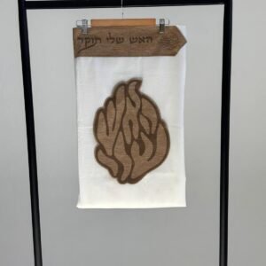 טלית צמר פרימיום כולל עטרה פינות וסמל דגם האש שלי פשתן קאמל מידה 60 – (140/190 ס”מ)