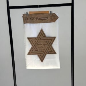 טלית צמר פרימיום כולל עטרה פינות וסמל דגם מגן דוד צבע פשתן קאמל מידה 60 – (140/190 ס”מ)