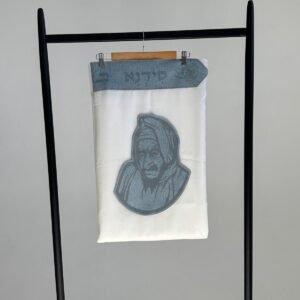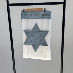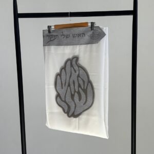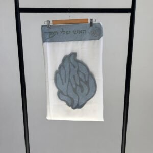 טלית צמר פרימיום כולל עטרה פינות וסמל דגם האש שלי פשתן אפור מידה 60 – (140/190 ס”מ)