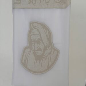 טלית צמר פרימיום כולל עטרה פינות וסמל דגם בבא סאלי לבן פנינה מידה 60 – (140/190 ס”מ)