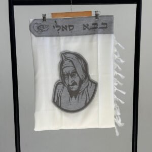 טלית צמר פרימיום כולל עטרה פינות וסמל דגם בבא סאלי פשתן אפור מידה 60 – (140/190 ס”מ)