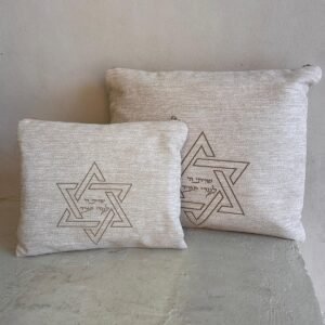 סט כיסויים לטלית ולתפילין דגם מגן דוד צבע פשתן אבן