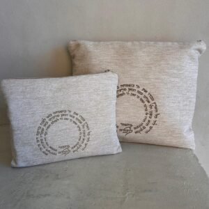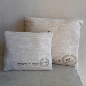 סט כיסויים לטלית ולתפילין דגם יברכך ה’ וישמרך צבע פשתן אבן
