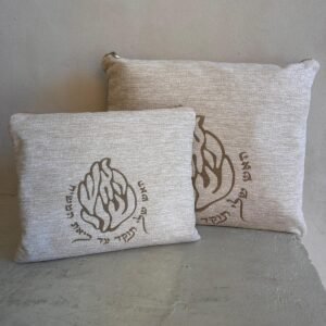 סט כיסויים לטלית ולתפילין דגם האש שלי צבע פשתן אבן
