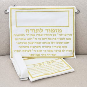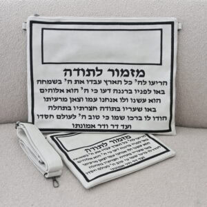 סט תיקים דמוי עור לבן דגם מזמור לתודה רקמה בזהב כולל רצועה