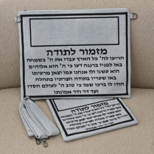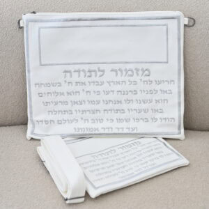 סט תיקים דמוי עור לבן דגם מזמור לתודה רקמה בכסף כולל רצועה