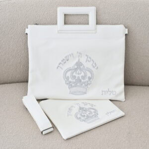 סט תיקים דמוי עור לבן דגם כתר רקמה בכסף כולל רצועה וידית נשיאה