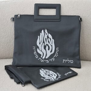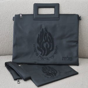 סט תיקים דמוי עור שחור דגם האש שלי רקמה בשחור כולל רצועה וידית נשיאה
