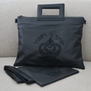 סט תיקים דמוי עור שחור דגם כתר רקמה בשחור כולל רצועה וידית נשיאה