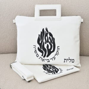 סט תיקים דמוי עור לבן דגם האש שלי רקמה בשחור כולל רצועה וידית נשיאה