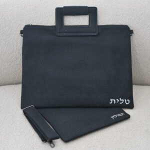 סט תיקים פשתן דגם קלאסי שחור רקמה בכסף כולל ידית ורצועה