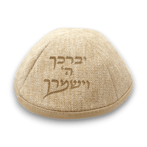 כיפה מרוקאית דגם יברכך השם וישמרך צבע פשתן לבן