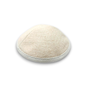 כיפה קטיפה לבנה עם רקמת רבי שמעון בר יוחאי בכסף