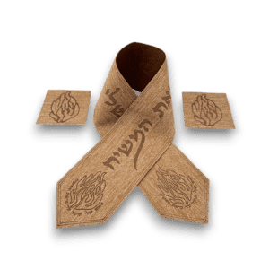 סט עטרה ופינות לטלית פשתן קאמל דגם האש שלי