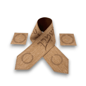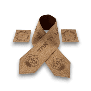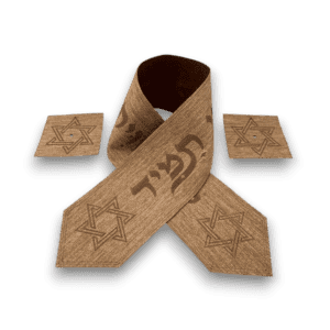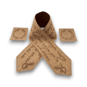 סט עטרה ופינות לטלית פשתן קאמל דגם מזמור לתודה