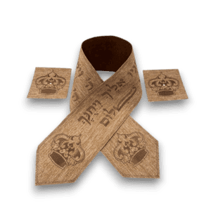 סט עטרה ופינות לטלית פשתן קאמל דגם יברכך ה’ וישמרך