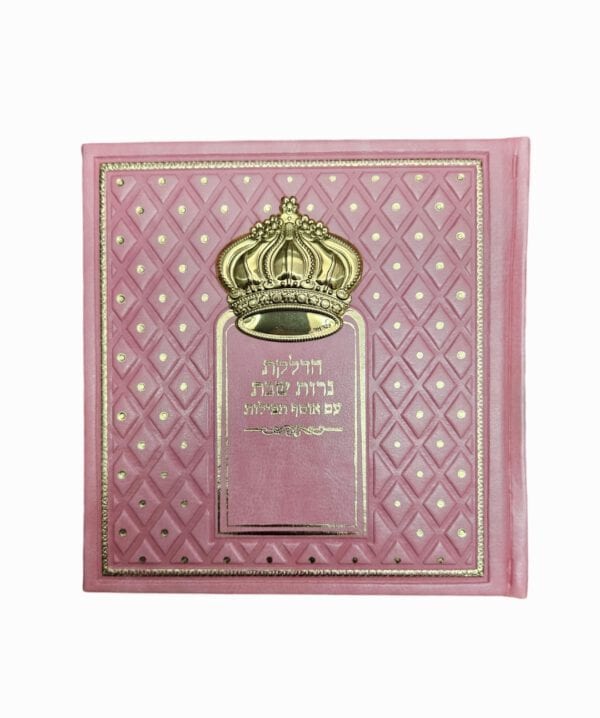 הדלקת נרות שבת עם אוסף תפילות דמוי עור ורוד עם כתר זהב 15/15 ס”מ