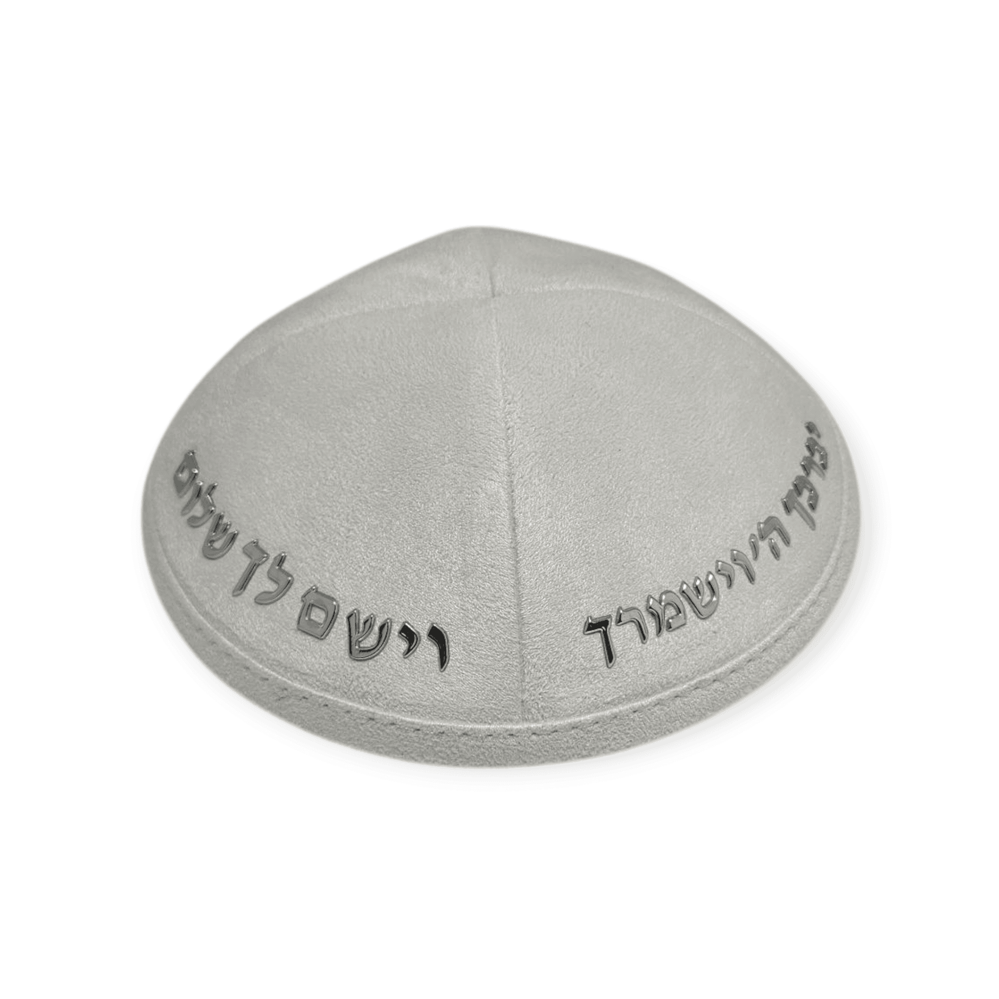 כיפה קטיפה לבנה עם מדבקה נ נח נחמ נחמן מאומן בכסף