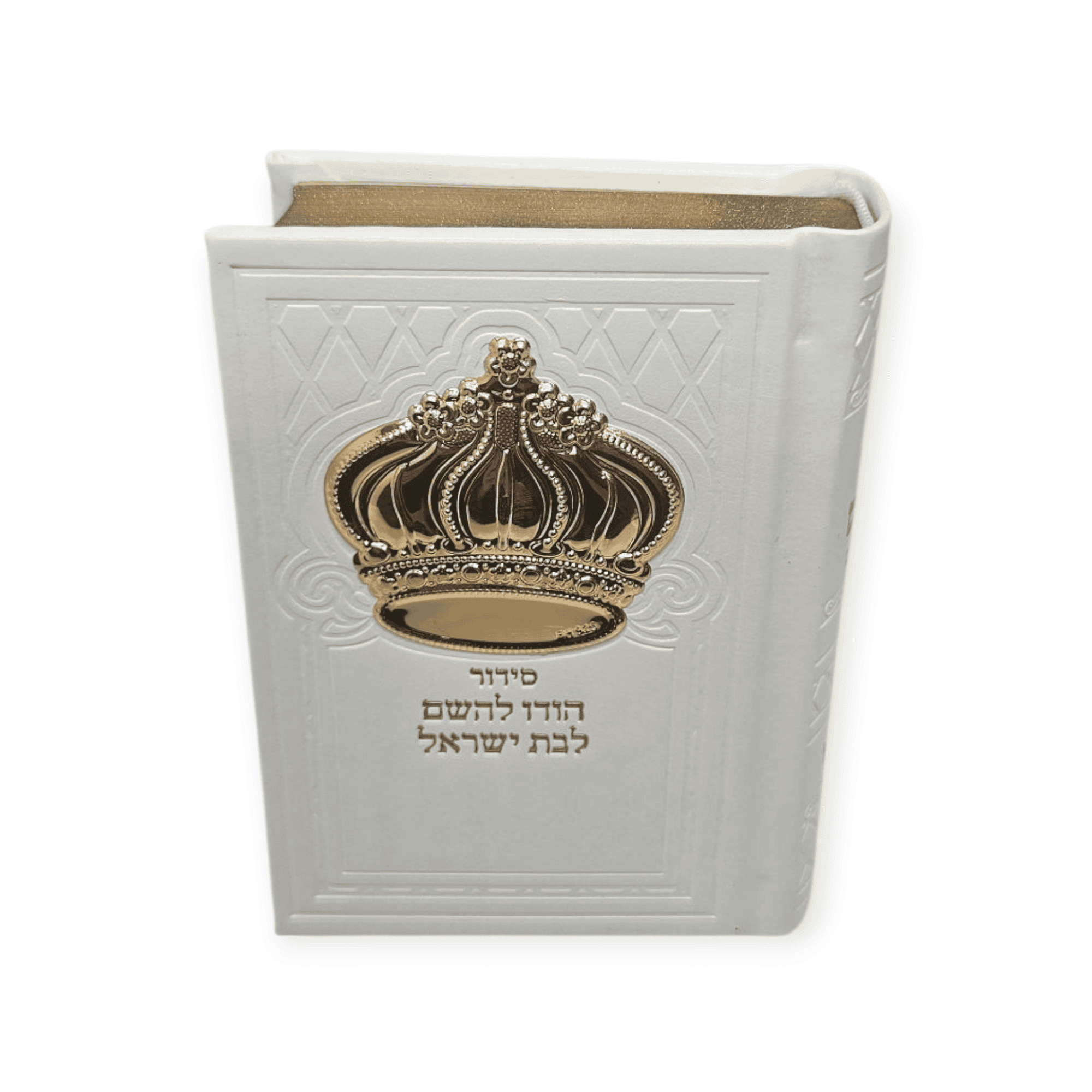 סידור בת ישראל קטן לבן עם כתר זהב כולל תהלים