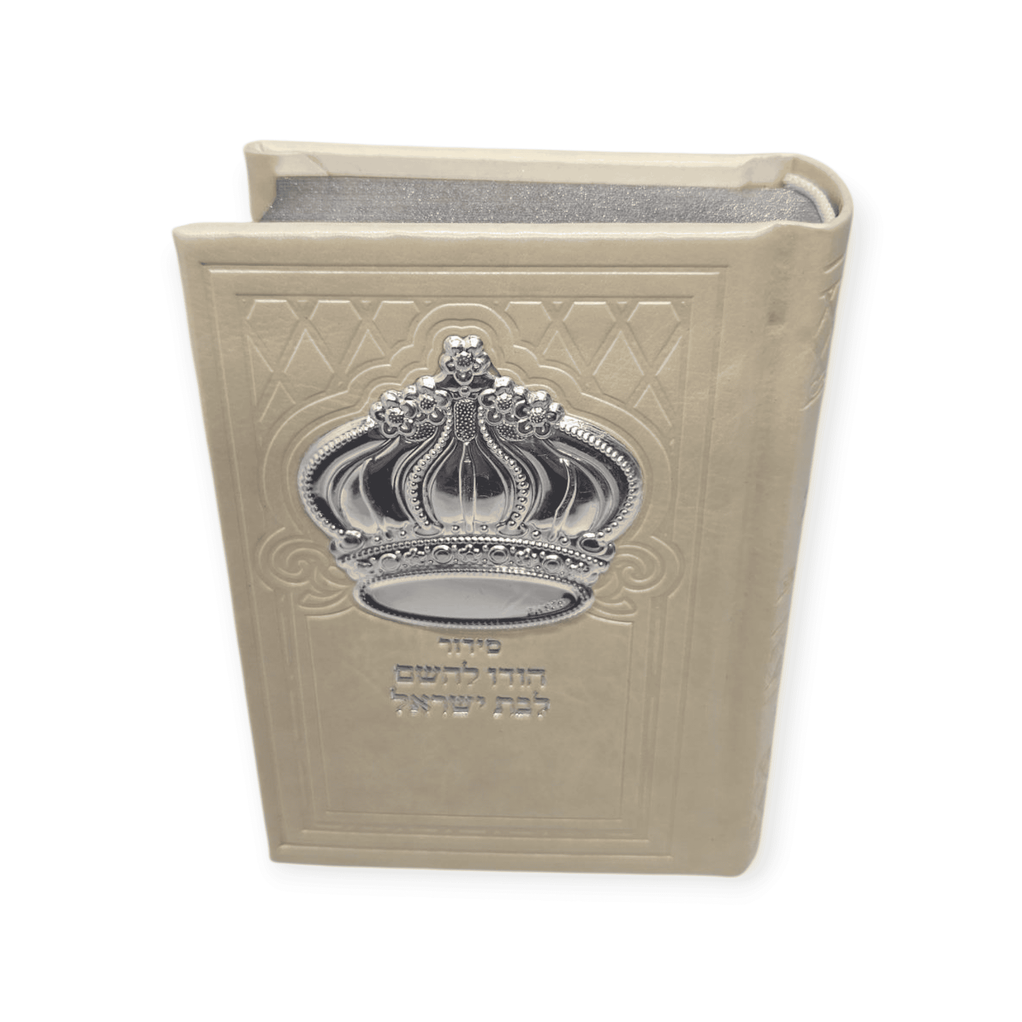 סידור בת ישראל קטן לבן עם כתר כסוף כולל תהלים